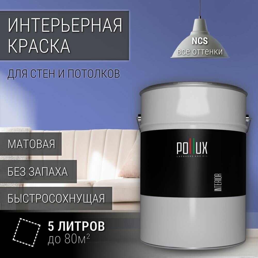 Краска моющаяся интерьерная для стен и потолков, Pollux INTERIOR без запаха, быстросохнущая, акриловая, матовое покрытие, цвет NCS S 2050-R70B, 5л. информация:
