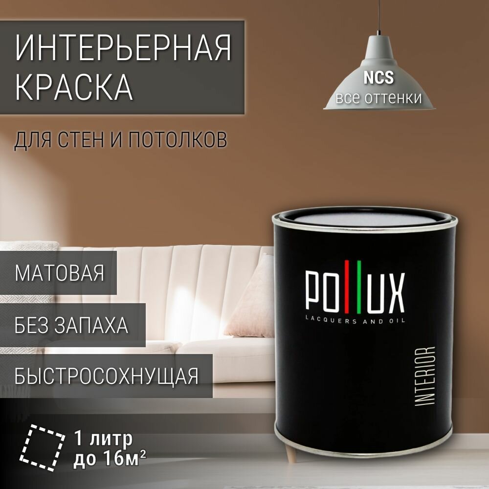 Краска моющаяся интерьерная для стен и потолков, Pollux INTERIOR без запаха, быстросохнущая, акриловая, матовое покрытие, цвет NCS S 5020-Y40R, 1л. информация: