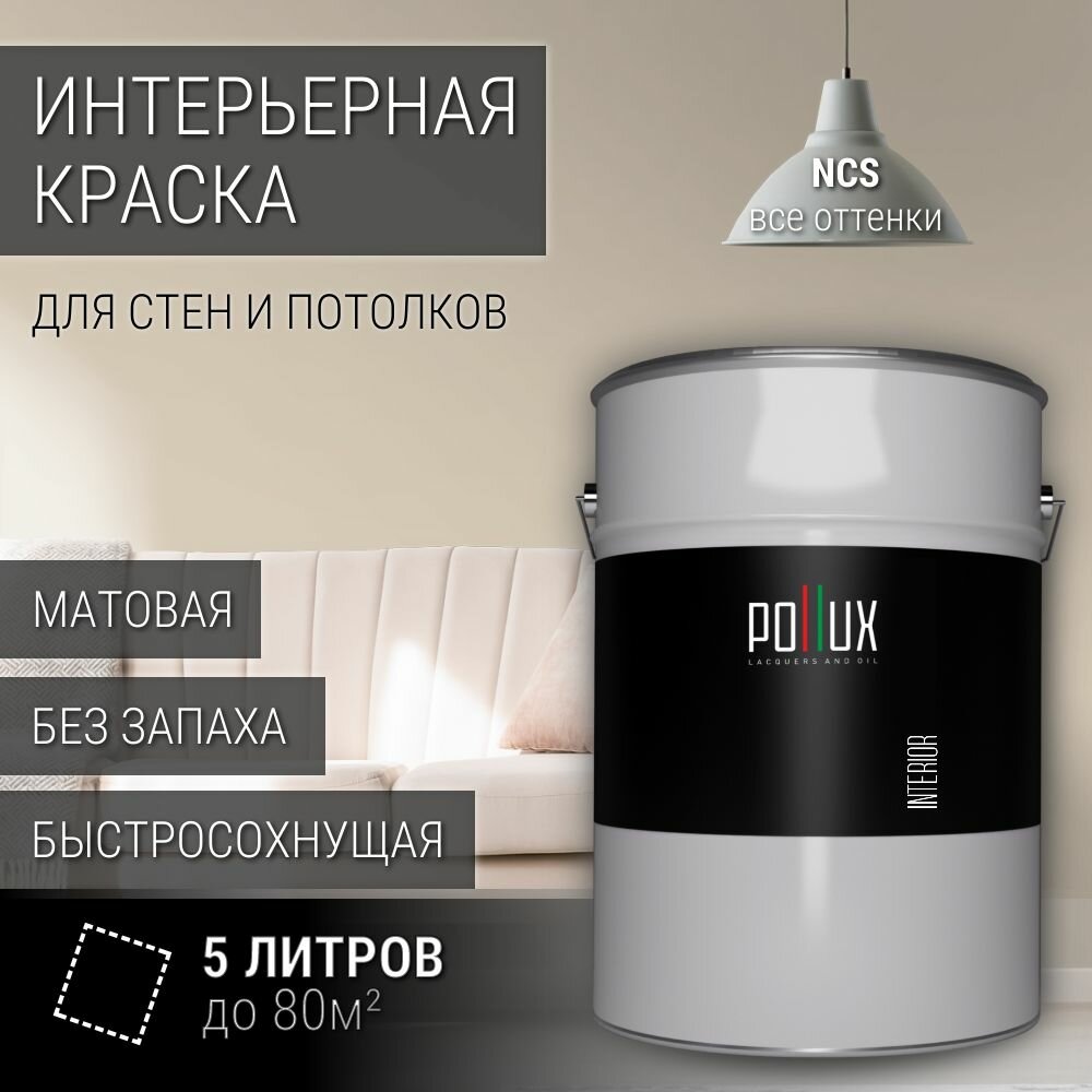 Краска моющаяся интерьерная для стен и потолков, Pollux INTERIOR без запаха, быстросохнущая, акриловая, матовое покрытие, цвет NCS S 7020-Y40R, 5л. 12 385 ₽