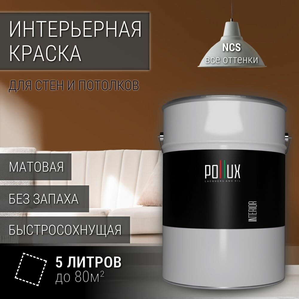 Краска моющаяся интерьерная для стен и потолков, Pollux INTERIOR без запаха, быстросохнущая, акриловая, матовое покрытие, цвет NCS S 7020-Y40R, 5л. 12 385 ₽