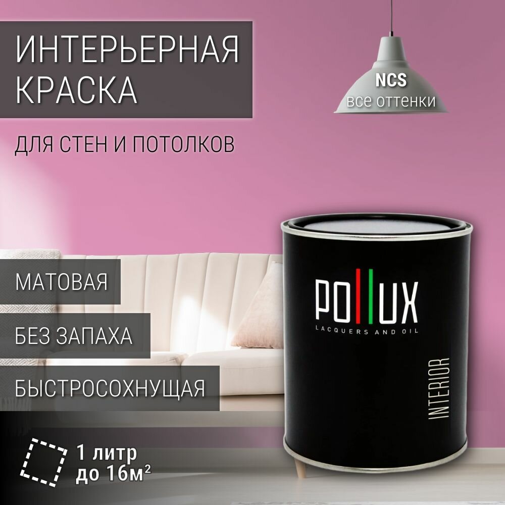 Краска моющаяся интерьерная для стен и потолков, Pollux INTERIOR без запаха, быстросохнущая, акриловая, матовое покрытие, цвет NCS S 1060-R30B, 1л.