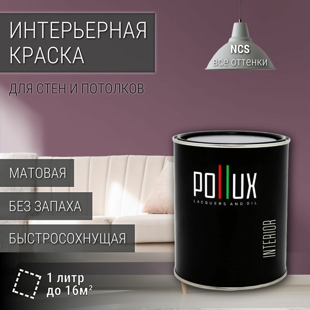 Краска моющаяся интерьерная для стен и потолков, Pollux INTERIOR без запаха, быстросохнущая, акриловая, матовое покрытие, цвет NCS S 1060-R30B, 1л.