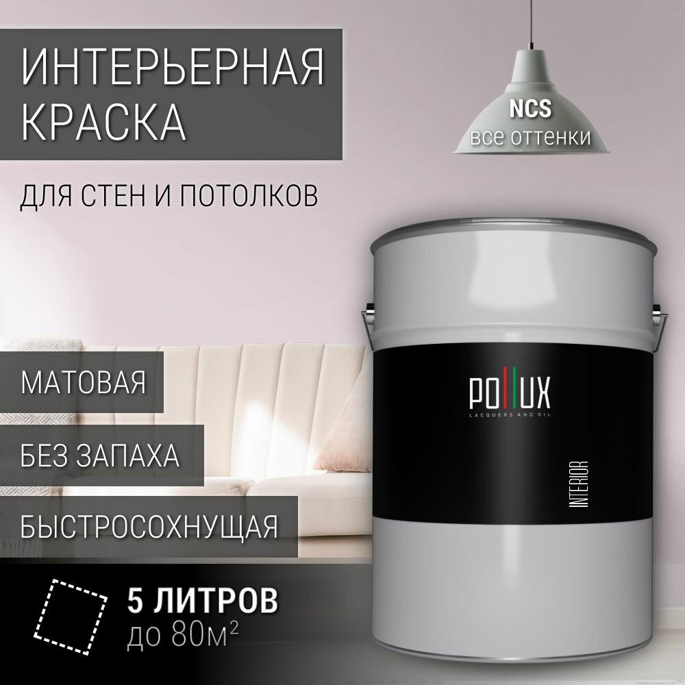 Краска моющаяся интерьерная для стен и потолков, Pollux INTERIOR без запаха, быстросохнущая, акриловая, матовое покрытие, цвет NCS S 0907-R30B, 5л. информация: