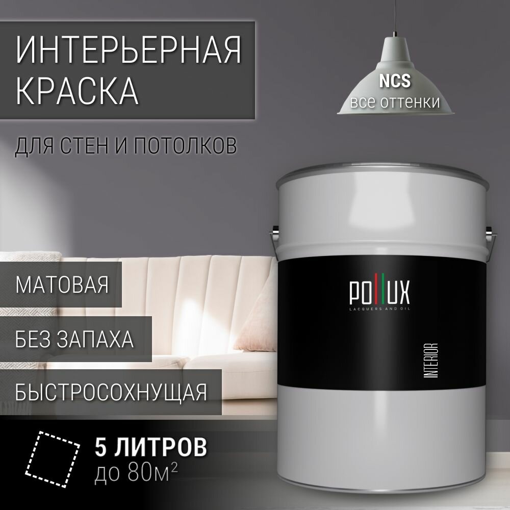 Краска моющаяся интерьерная для стен и потолков, Pollux INTERIOR без запаха, быстросохнущая, акриловая, матовое покрытие, цвет NCS S 7020-R50B, 5л. 12 385 ₽