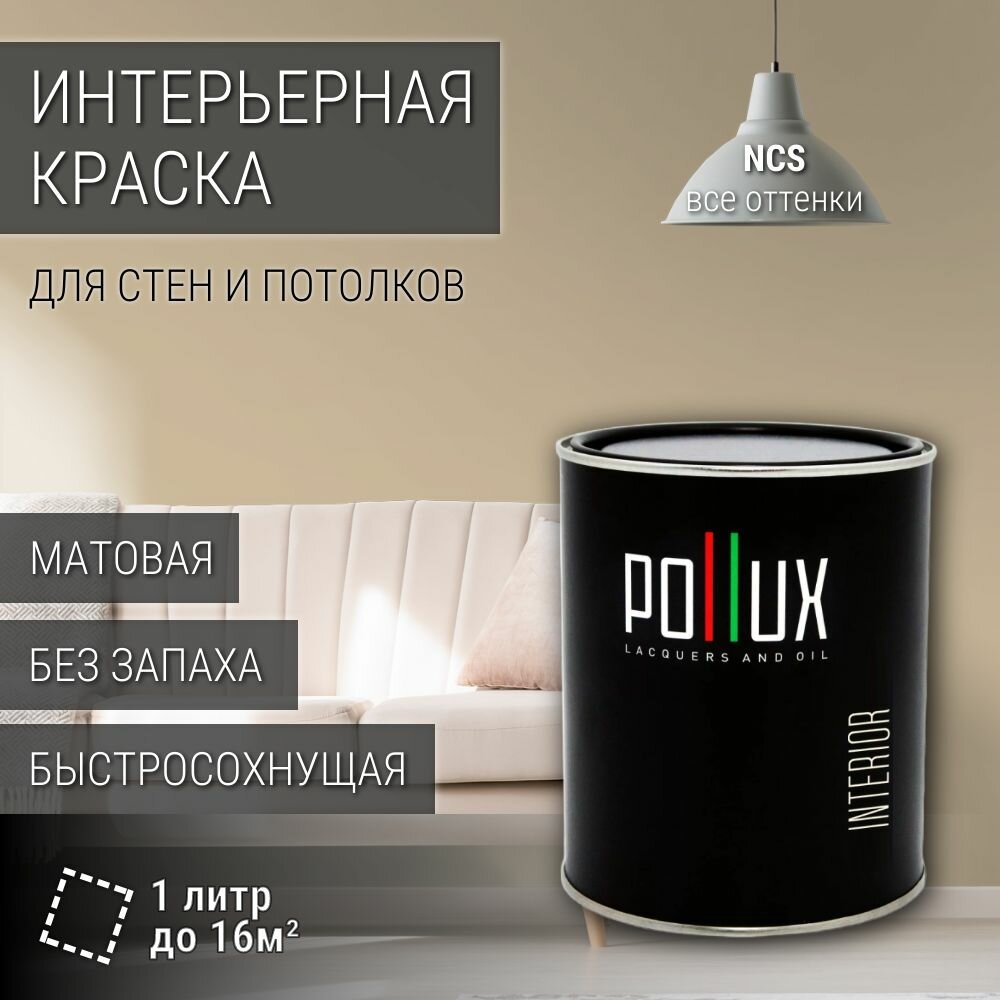 Краска моющаяся интерьерная для стен и потолков, Pollux INTERIOR без запаха, быстросохнущая, акриловая, матовое покрытие, цвет NCS S 2010-Y20R, 1л. информация: