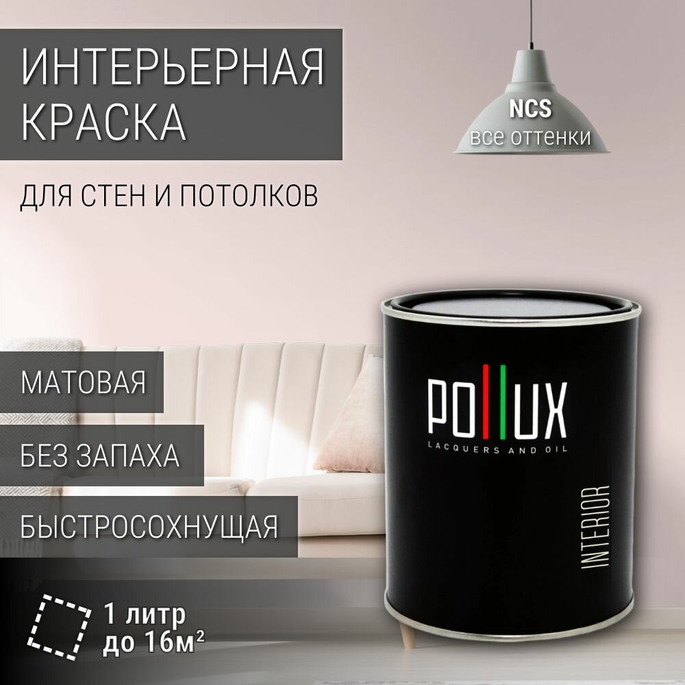 Краска моющаяся интерьерная для стен и потолков, Pollux INTERIOR без запаха, быстросохнущая, акриловая, матовое покрытие, цвет NCS S 0507-R, 1л. информация: