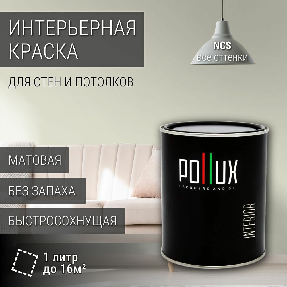 Краска моющаяся интерьерная для стен и потолков, Pollux INTERIOR без запаха, быстросохнущая, акриловая, матовое покрытие, цвет NCS S 1005-G80Y, 1л. информация: