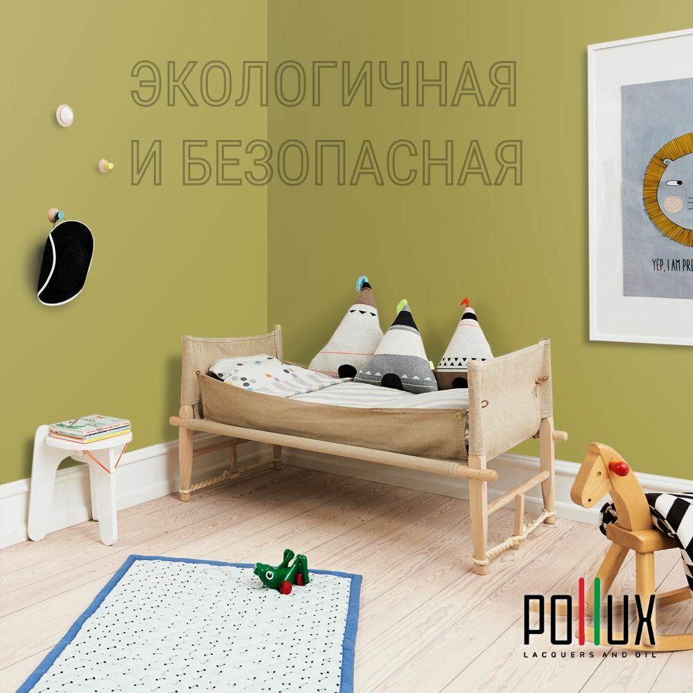Краска моющаяся интерьерная для стен и потолков, Pollux INTERIOR без запаха, быстросохнущая, акриловая, матовое покрытие, цвет NCS S 4050-G40Y, 1л.