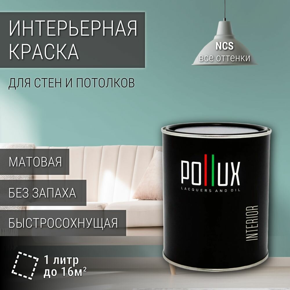 Краска моющаяся интерьерная для стен и потолков, Pollux INTERIOR без запаха, быстросохнущая, акриловая, матовое покрытие, цвет NCS S 2020-B60G, 1л. информация: