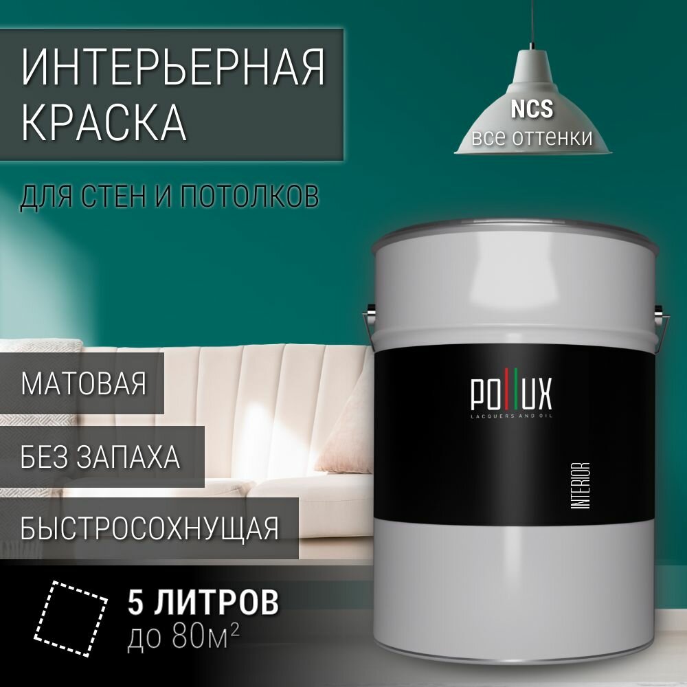 Краска моющаяся интерьерная для стен и потолков, Pollux INTERIOR без запаха, быстросохнущая, акриловая, матовое покрытие, цвет NCS S 4050-B60G, 5л. информация: