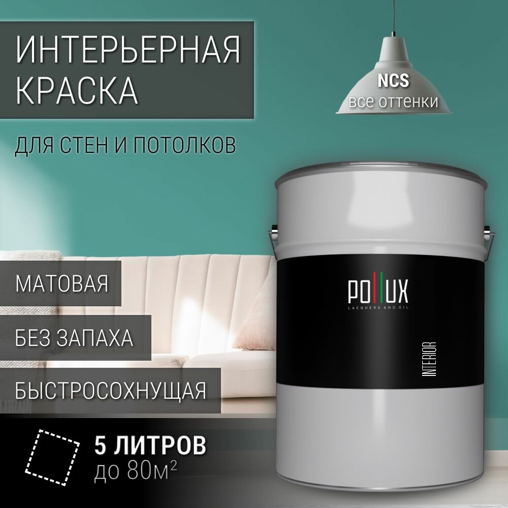 Краска моющаяся интерьерная для стен и потолков, Pollux INTERIOR без запаха, быстросохнущая, акриловая, матовое покрытие, цвет NCS S 3030-B60G, 5л. информация: