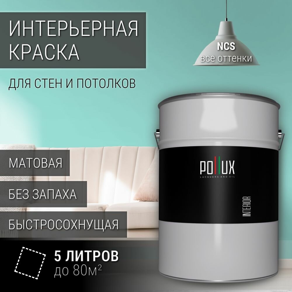 Краска моющаяся интерьерная для стен и потолков, Pollux INTERIOR без запаха, быстросохнущая, акриловая, матовое покрытие, цвет NCS S 0530-B60G, 5л. информация: