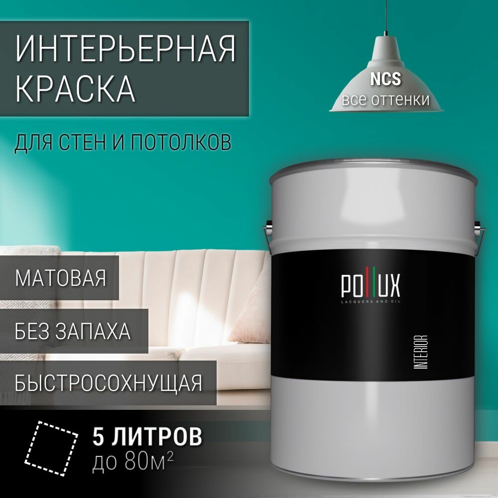 Краска моющаяся интерьерная для стен и потолков, Pollux INTERIOR без запаха, быстросохнущая, акриловая, матовое покрытие, цвет NCS S 2050-B60G, 5л. информация: