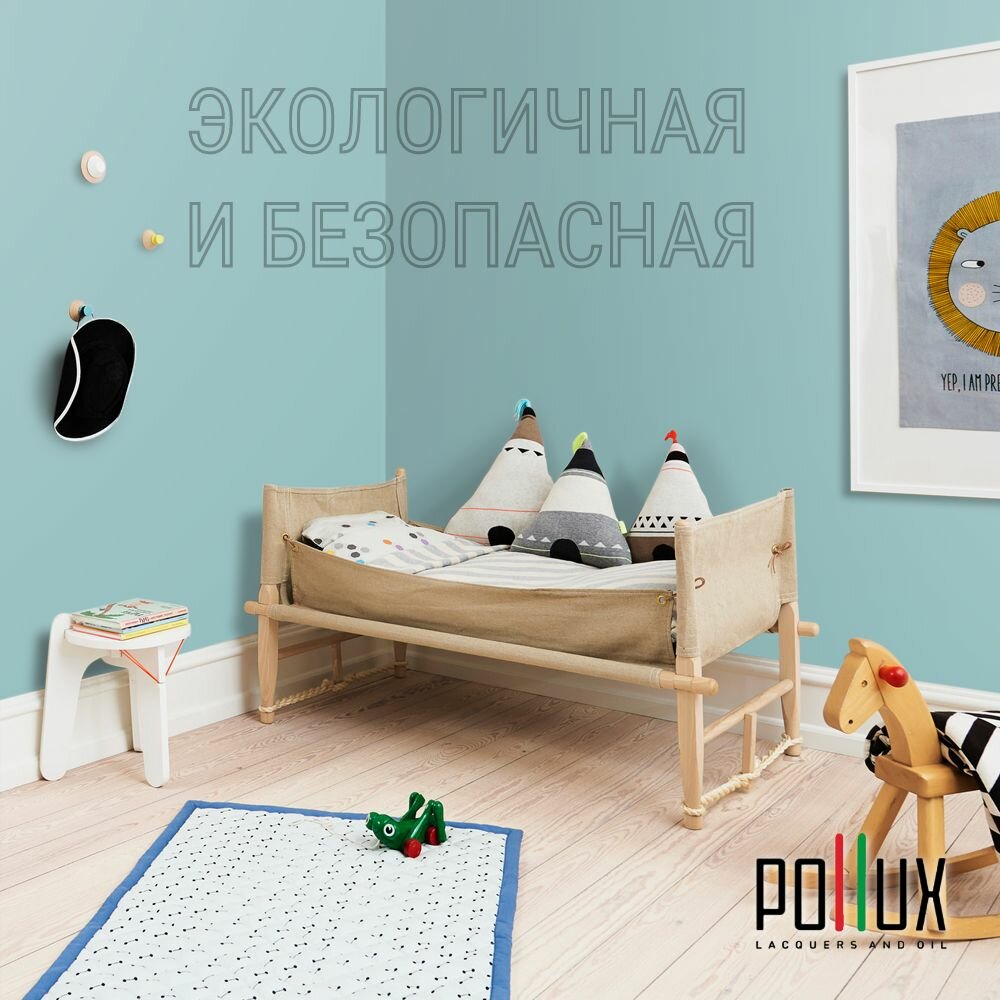 Краска моющаяся интерьерная для стен и потолков, Pollux INTERIOR без запаха, быстросохнущая, акриловая, матовое покрытие, цвет NCS S 2020-B40G, 1л. информация: