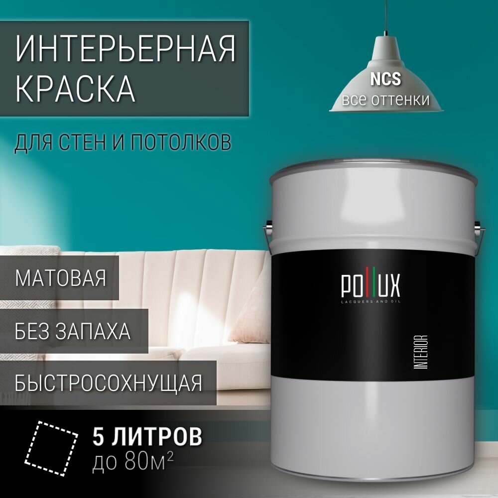 Краска моющаяся интерьерная для стен и потолков, Pollux INTERIOR без запаха, быстросохнущая, акриловая, матовое покрытие, цвет NCS S 2555-B40G, 5л. информация: