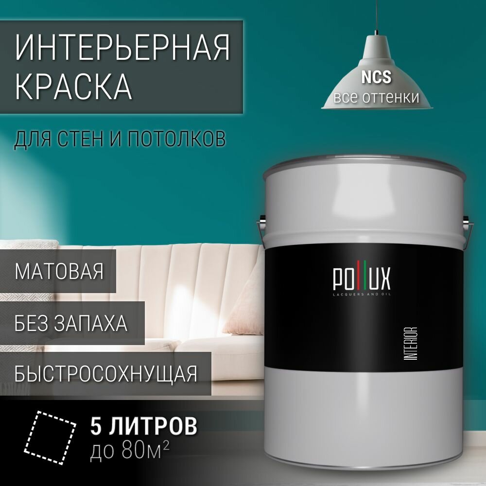 Краска моющаяся интерьерная для стен и потолков, Pollux INTERIOR без запаха, быстросохнущая, акриловая, матовое покрытие, цвет NCS S 1020-B40G, 5л. 12 385 ₽