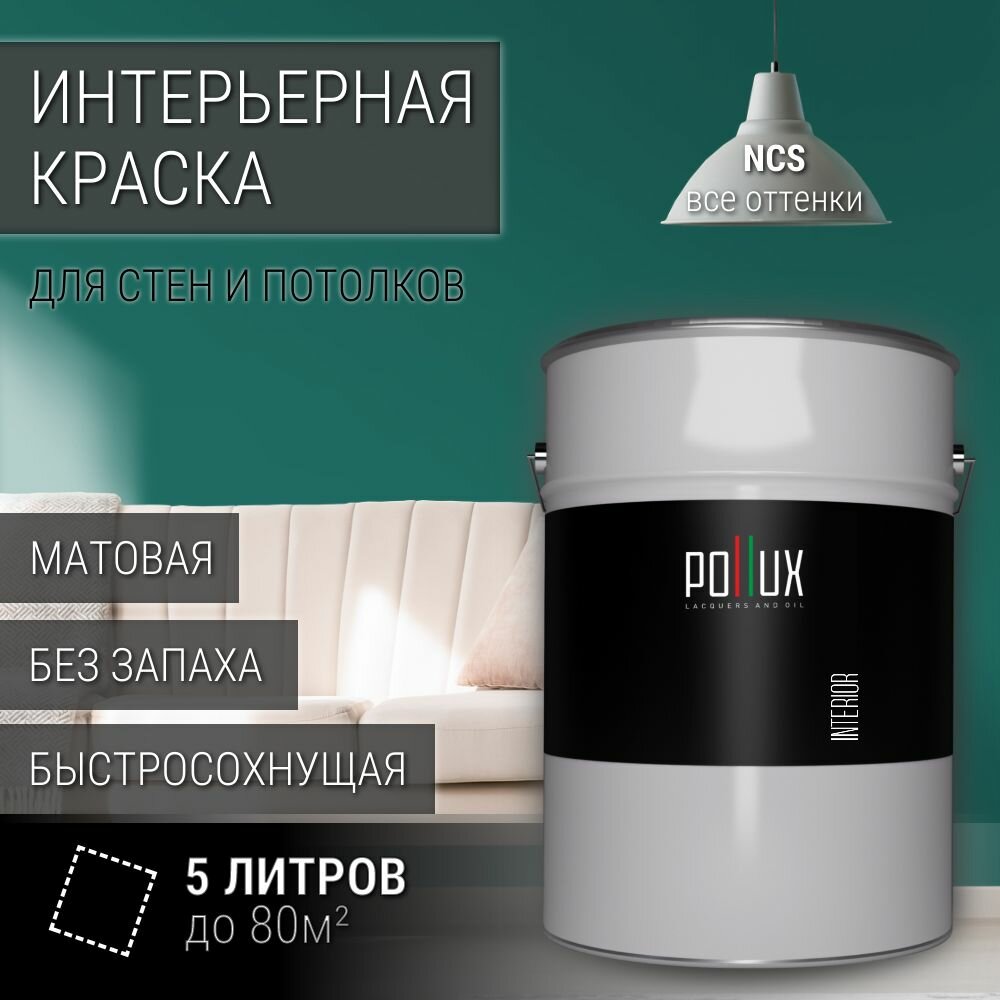 Краска моющаяся интерьерная для стен и потолков, Pollux INTERIOR без запаха, быстросохнущая, акриловая, матовое покрытие, цвет NCS S 5030-B70G, 5л. информация: