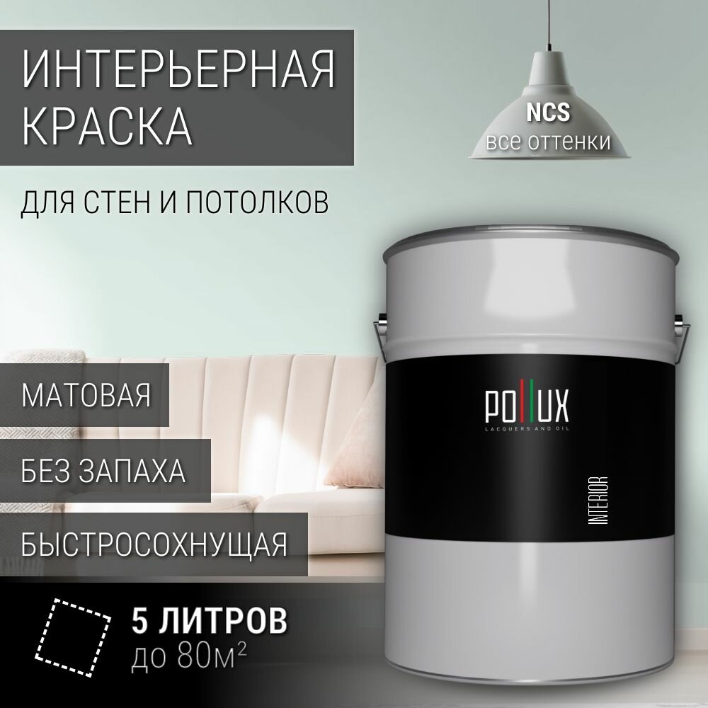 Краска моющаяся интерьерная для стен и потолков, Pollux INTERIOR без запаха, быстросохнущая, акриловая, матовое покрытие, цвет NCS S 0507-B80G, 5л. информация: