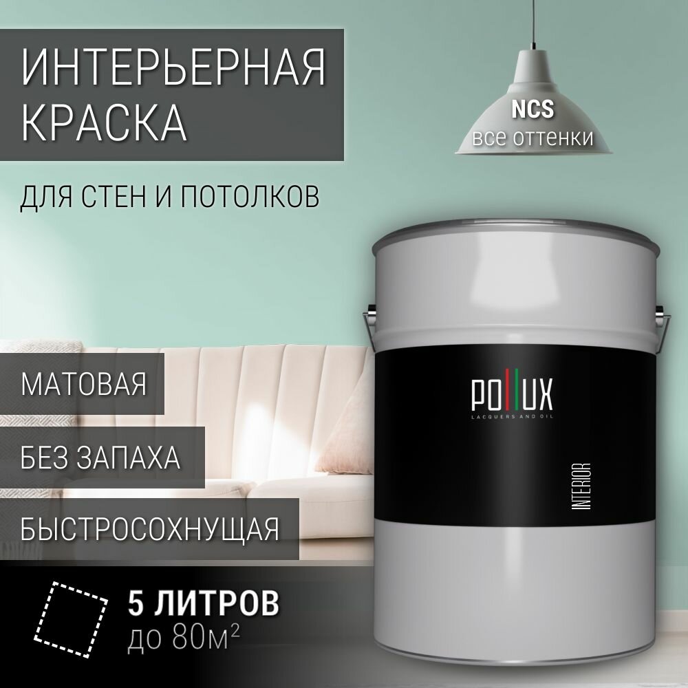 Краска моющаяся интерьерная для стен и потолков, Pollux INTERIOR без запаха, быстросохнущая, акриловая, матовое покрытие, цвет NCS S 1015-B80G, 5л. информация: