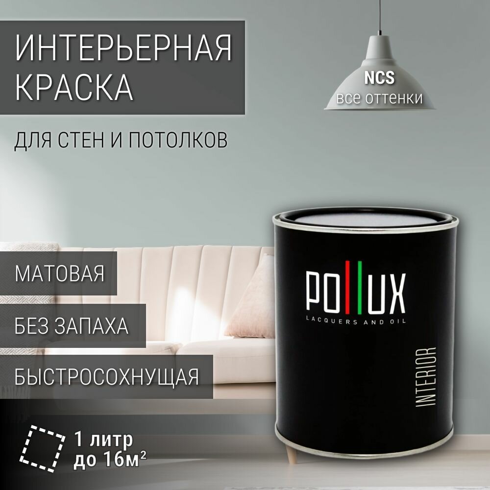 Краска моющаяся интерьерная для стен и потолков, Pollux INTERIOR без запаха, быстросохнущая, акриловая, матовое покрытие, цвет NCS S 2005-B80G, 1л. информация: