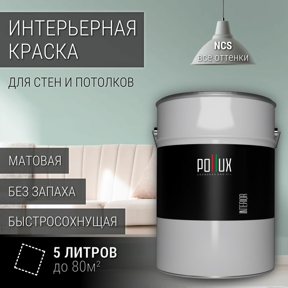 Краска моющаяся интерьерная для стен и потолков, Pollux INTERIOR без запаха, быстросохнущая, акриловая, матовое покрытие, цвет NCS S 1510-B80G, 5л. информация: