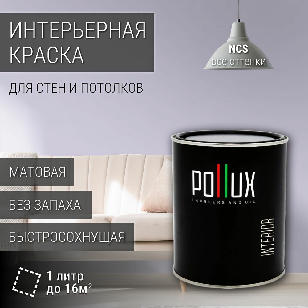 Краска моющаяся интерьерная для стен и потолков, Pollux INTERIOR без запаха, быстросохнущая, акриловая, матовое покрытие, цвет NCS S 7020-R60B, 1л. 2 535 ₽