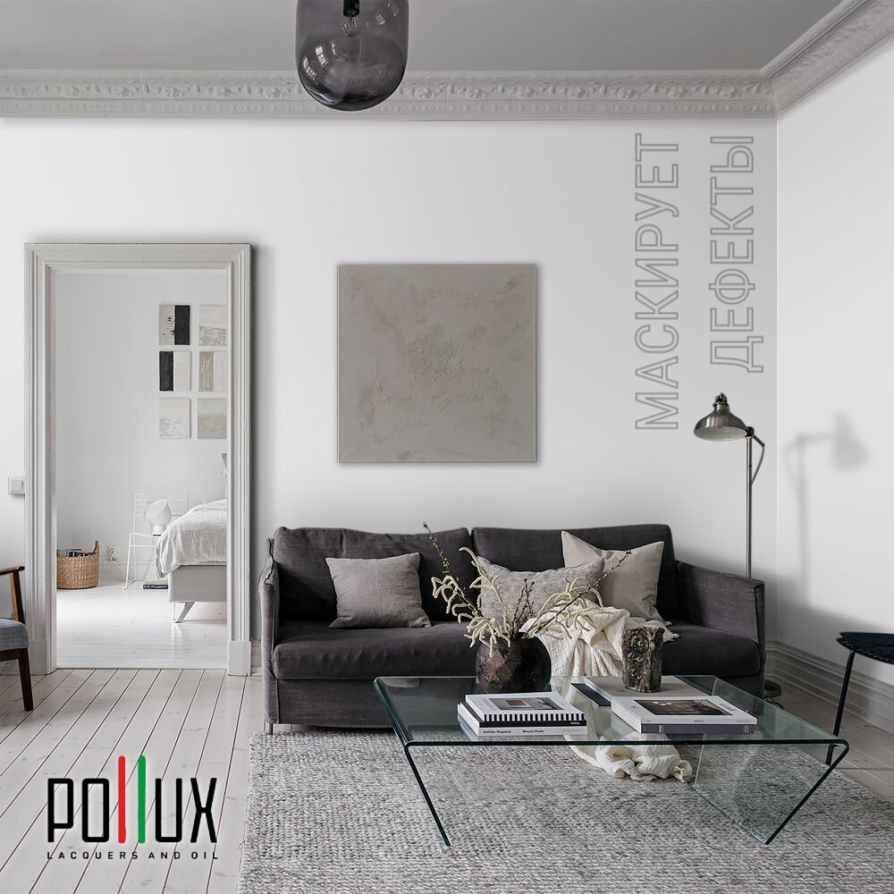 Отзывы на Краска моющаяся интерьерная для стен и потолков, Pollux INTERIOR без запаха, быстросохнущая, акриловая, матовое покрытие, цвет NCS S 0603-R60B, 5л.
