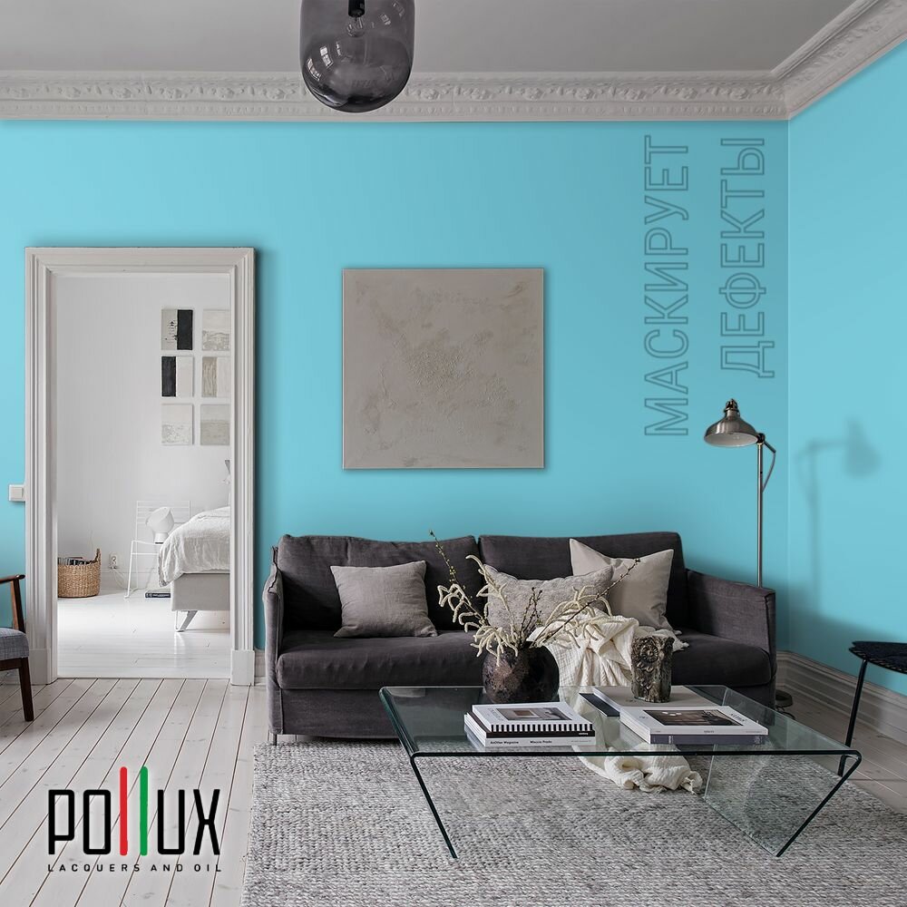 Краска моющаяся интерьерная для стен и потолков, Pollux INTERIOR без запаха, быстросохнущая, акриловая, матовое покрытие, цвет NCS S 0510-B10G, 1л. 2 535 ₽