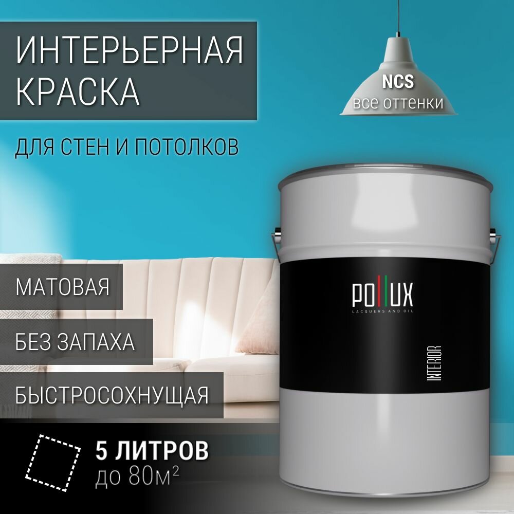 Краска моющаяся интерьерная для стен и потолков, Pollux INTERIOR без запаха, быстросохнущая, акриловая, матовое покрытие, цвет NCS S 1050-B10G, 5л. информация: