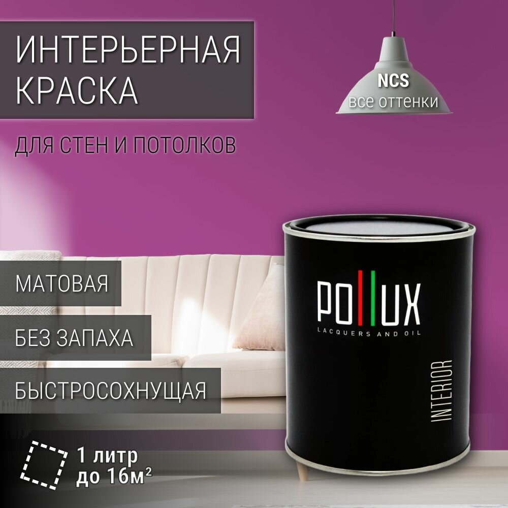 Краска моющаяся интерьерная для стен и потолков, Pollux INTERIOR без запаха, быстросохнущая, акриловая, матовое покрытие, цвет NCS S 2060-R40B, 1л. информация: