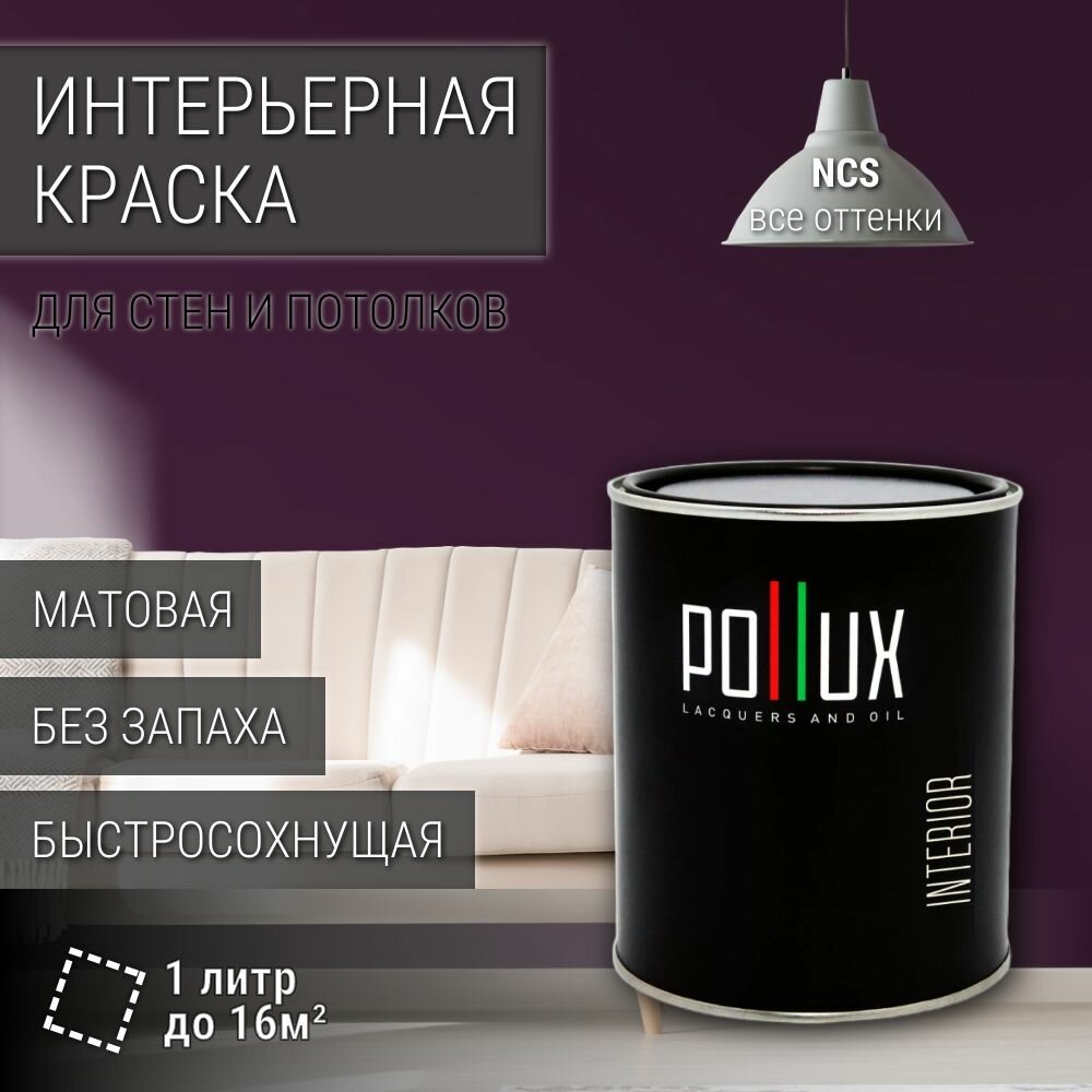 Краска моющаяся интерьерная для стен и потолков, Pollux INTERIOR без запаха, быстросохнущая, акриловая, матовое покрытие, цвет NCS S 7020-R40B, 1л. информация: