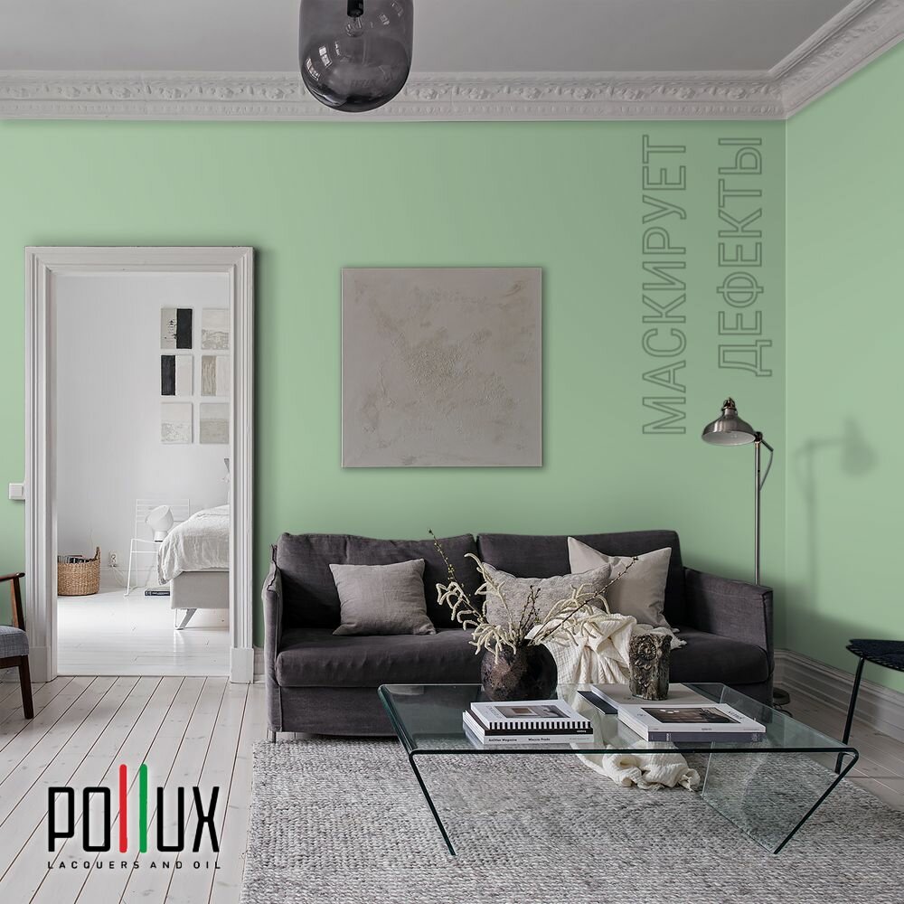Отзывы на Краска моющаяся интерьерная для стен и потолков, Pollux INTERIOR без запаха, быстросохнущая, акриловая, матовое покрытие, цвет NCS S 2020-G20Y, 1л.