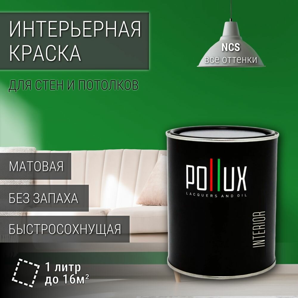 Краска моющаяся интерьерная для стен и потолков, Pollux INTERIOR без запаха, быстросохнущая, акриловая, матовое покрытие, цвет NCS S 2570-G20Y, 1л. информация: