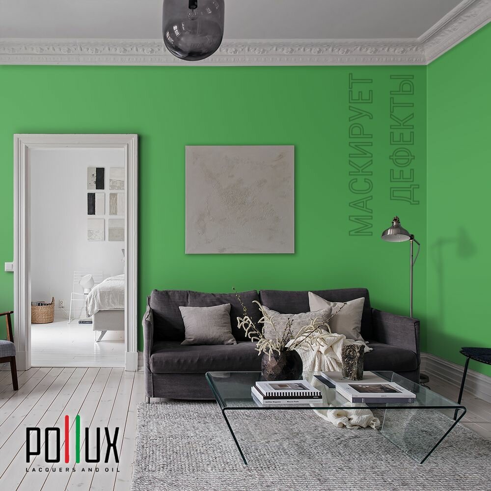 Отзывы на Краска моющаяся интерьерная для стен и потолков, Pollux INTERIOR без запаха, быстросохнущая, акриловая, матовое покрытие, цвет NCS S 2060-G20Y, 1л.