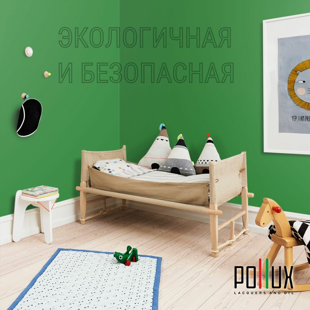 Краска моющаяся интерьерная для стен и потолков, Pollux INTERIOR без запаха, быстросохнущая, акриловая, матовое покрытие, цвет NCS S 3060-G20Y, 1л. информация: