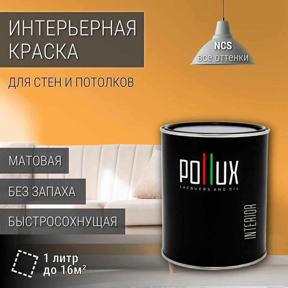 Краска моющаяся интерьерная для стен и потолков, Pollux INTERIOR без запаха, быстросохнущая, акриловая, матовое покрытие, цвет NCS S 0560-Y30R, 1л. информация: