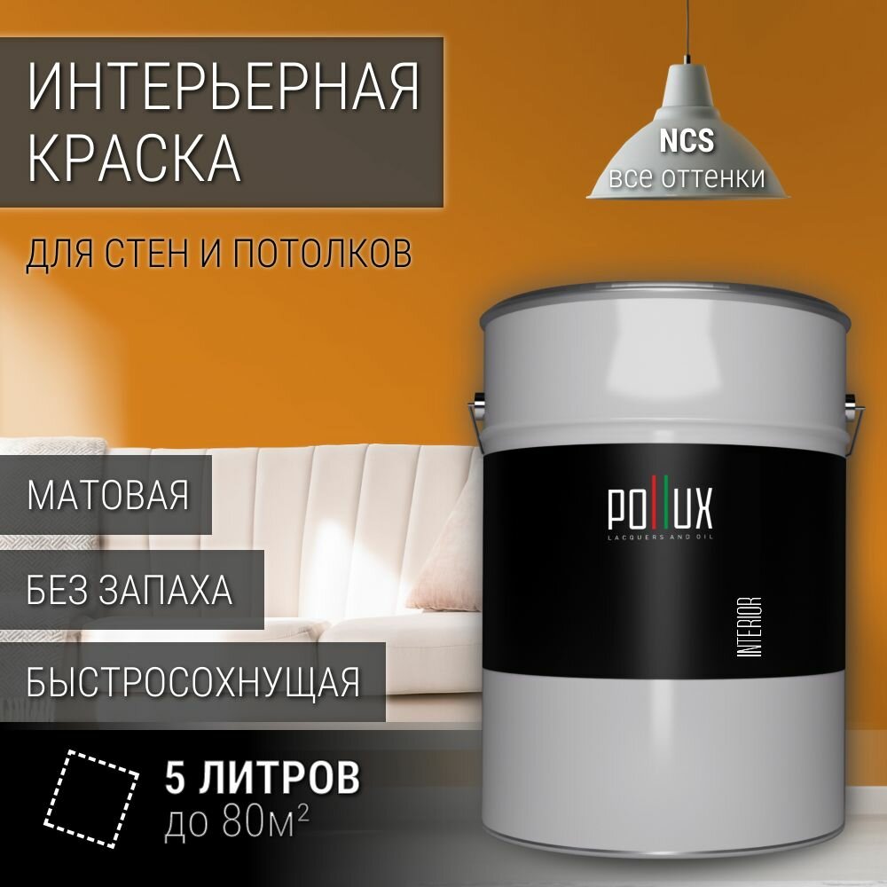 Краска моющаяся интерьерная для стен и потолков, Pollux INTERIOR без запаха, быстросохнущая, акриловая, матовое покрытие, цвет NCS S 2070-Y30R, 5л. информация: