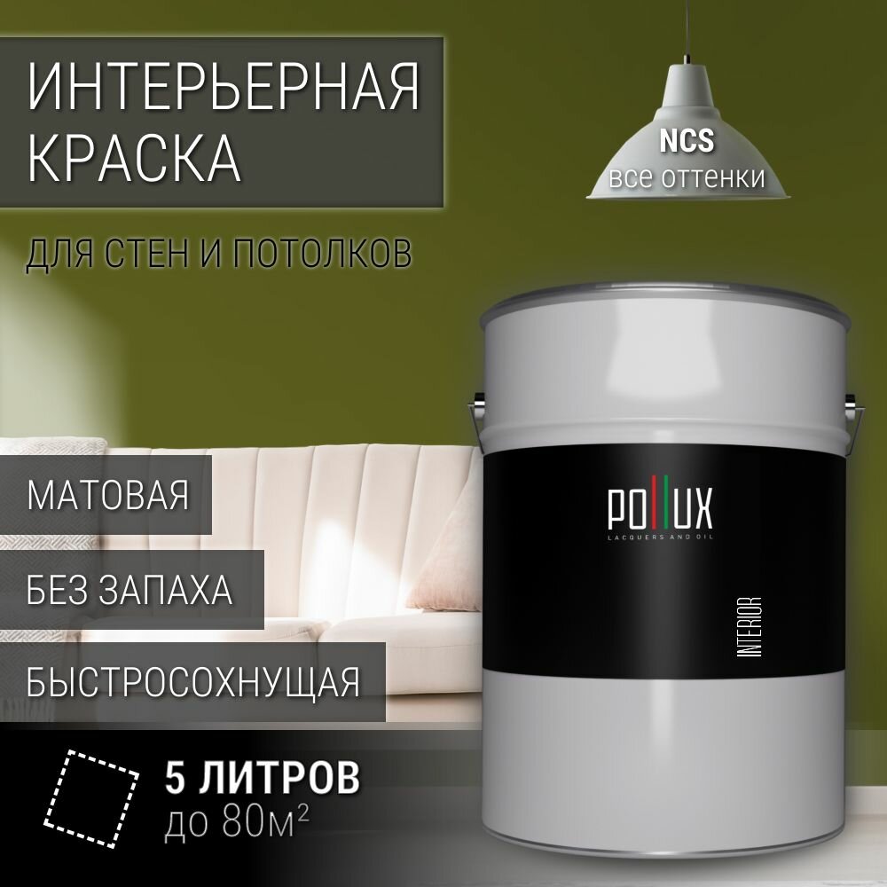 Краска моющаяся интерьерная для стен и потолков, Pollux INTERIOR без запаха, быстросохнущая, акриловая, матовое покрытие, цвет NCS S 3040-G60Y, 5л.