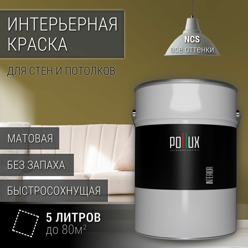 Краска моющаяся интерьерная для стен и потолков, Pollux INTERIOR без запаха, быстросохнущая, акриловая, матовое покрытие, цвет NCS S 4020-G90Y, 5л. 12 385 ₽
