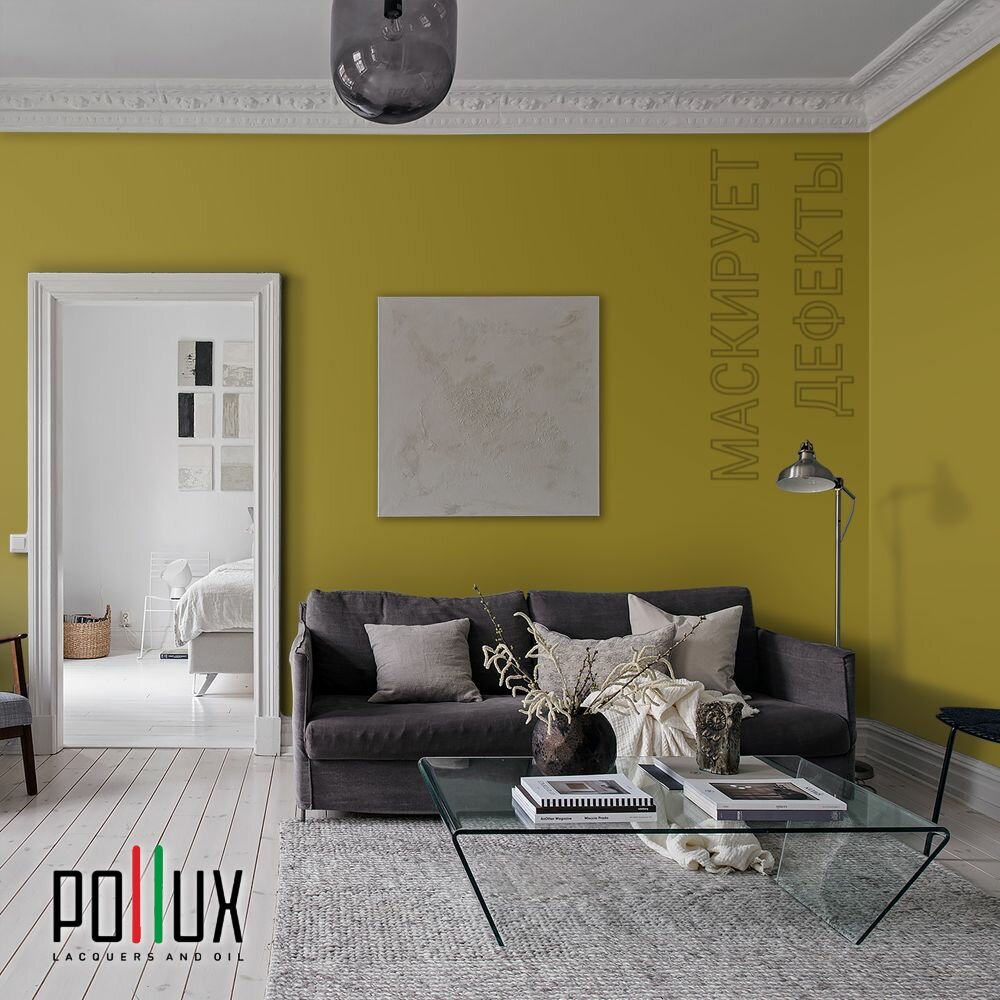 Краска моющаяся интерьерная для стен и потолков, Pollux INTERIOR без запаха, быстросохнущая, акриловая, матовое покрытие, цвет NCS S 1030-G90Y, 1л. 2 535 ₽
