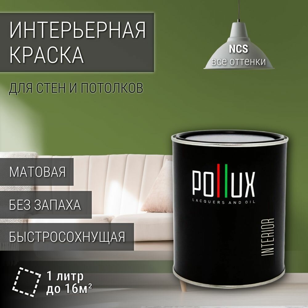 Краска моющаяся интерьерная для стен и потолков, Pollux INTERIOR без запаха, быстросохнущая, акриловая, матовое покрытие, цвет NCS S 4040-G40Y, 1л. информация: