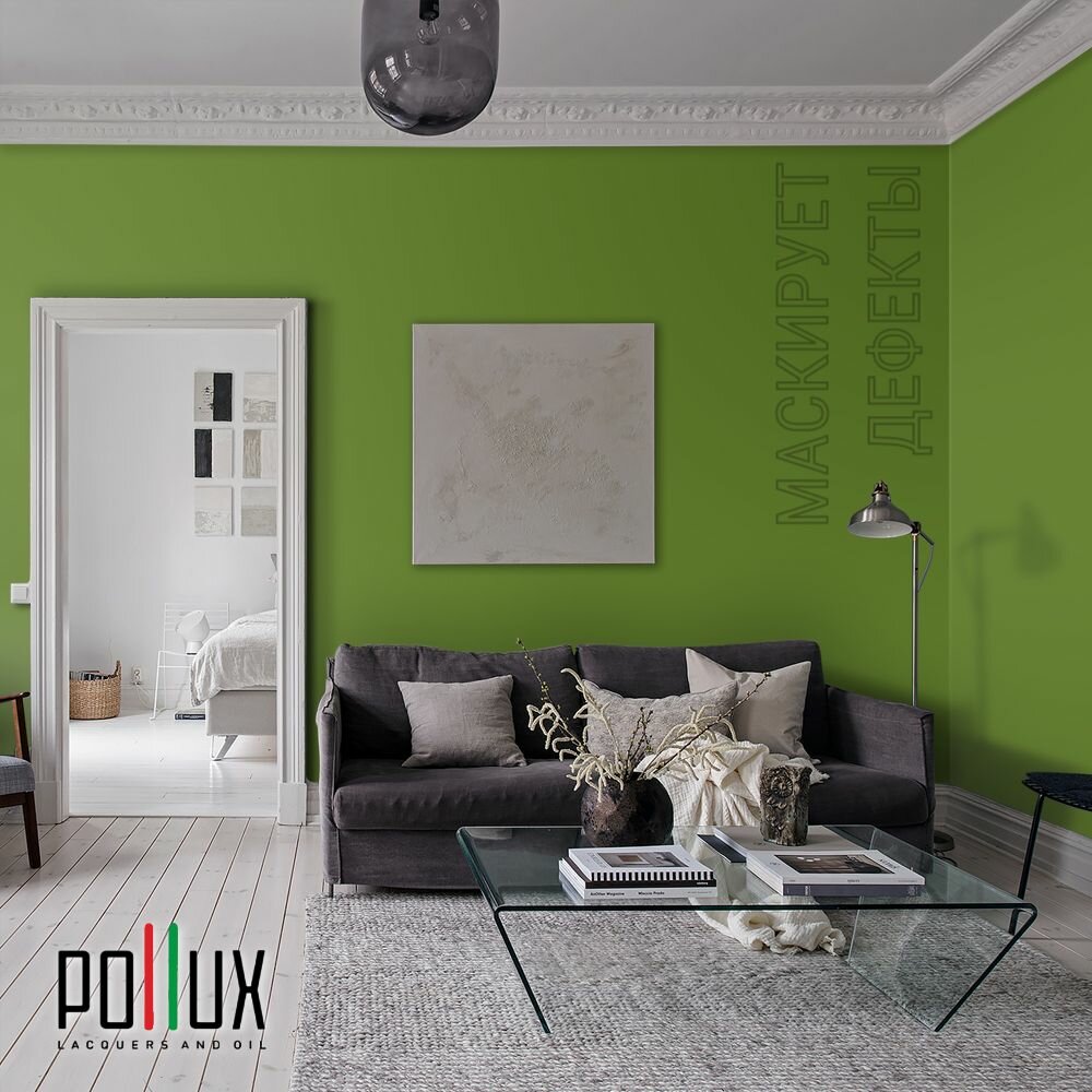 Краска моющаяся интерьерная для стен и потолков, Pollux INTERIOR без запаха, быстросохнущая, акриловая, матовое покрытие, цвет NCS S 3560-G40Y, 5л. информация: