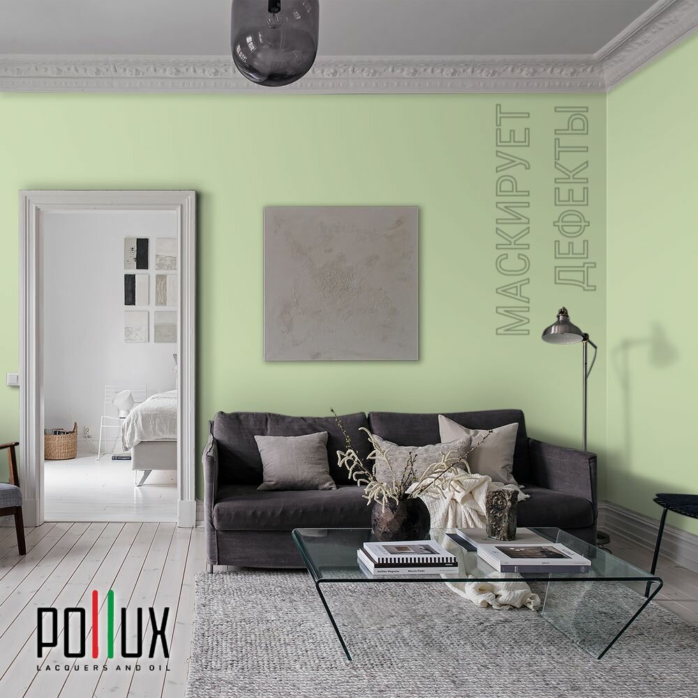 Краска моющаяся интерьерная для стен и потолков, Pollux INTERIOR без запаха, быстросохнущая, акриловая, матовое покрытие, цвет NCS S 1020-G40Y, 5л. информация: