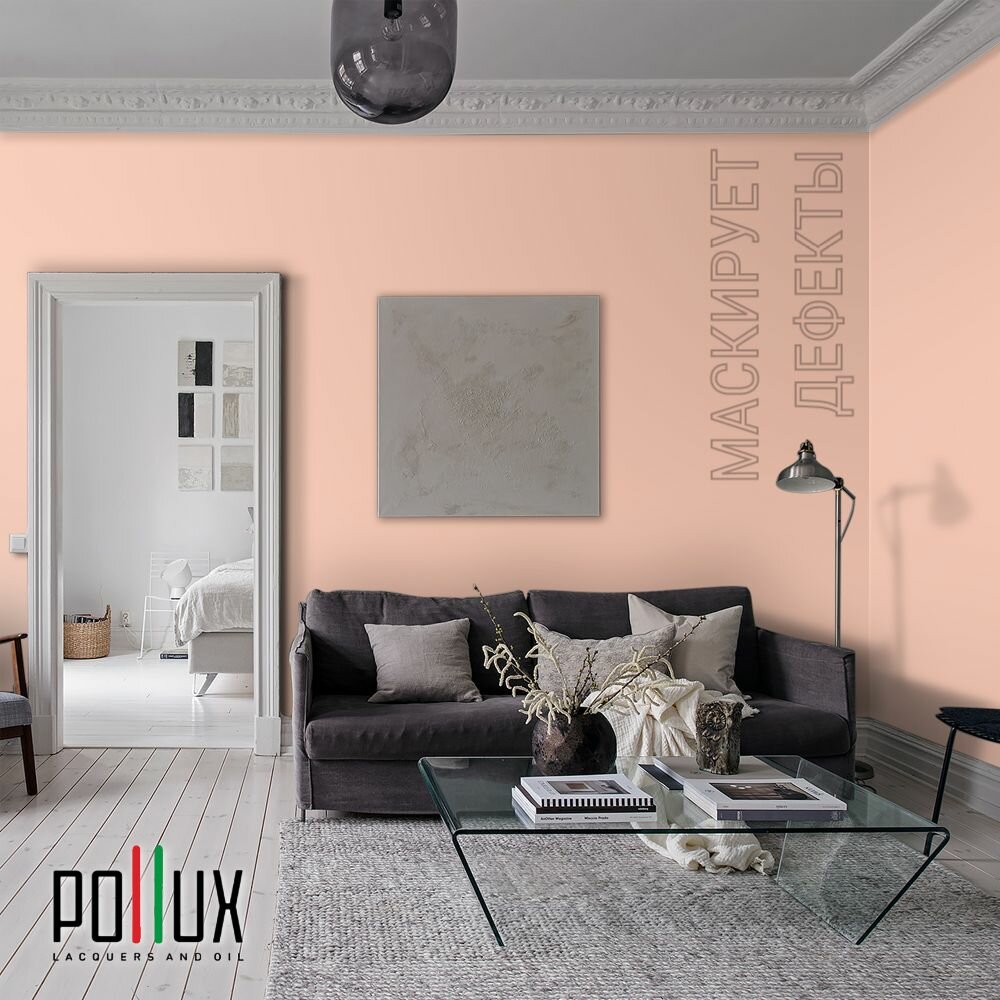 Краска моющаяся интерьерная для стен и потолков, Pollux INTERIOR без запаха, быстросохнущая, акриловая, матовое покрытие, цвет NCS S 5020-Y70R, 1л. 2 535 ₽
