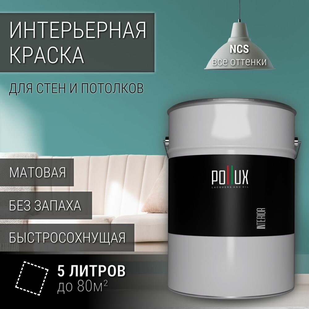 Краска моющаяся интерьерная для стен и потолков, Pollux INTERIOR без запаха, быстросохнущая, акриловая, матовое покрытие, цвет NCS S 3030-B50G, 5л. информация: