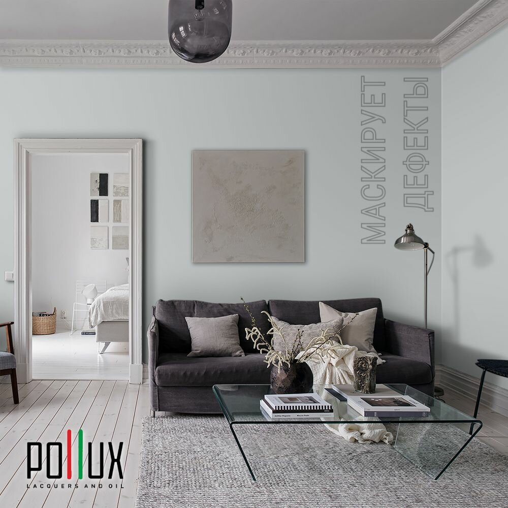 Краска моющаяся интерьерная для стен и потолков, Pollux INTERIOR без запаха, быстросохнущая, акриловая, матовое покрытие, цвет NCS S 1005-B50G, 1л.