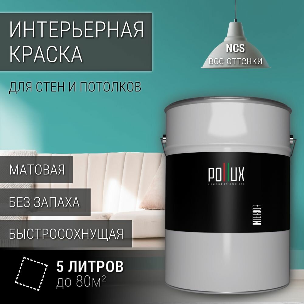 Краска моющаяся интерьерная для стен и потолков, Pollux INTERIOR без запаха, быстросохнущая, акриловая, матовое покрытие, цвет NCS S 2040-B50G, 5л. информация: