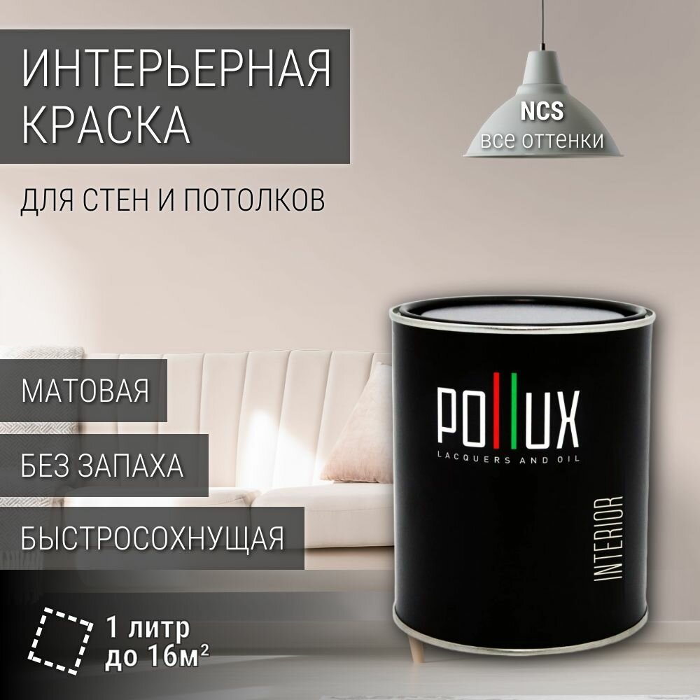 Краска моющаяся интерьерная для стен и потолков, Pollux INTERIOR без запаха, быстросохнущая, акриловая, матовое покрытие, цвет NCS S 7020-Y80R, 1л. 2 535 ₽