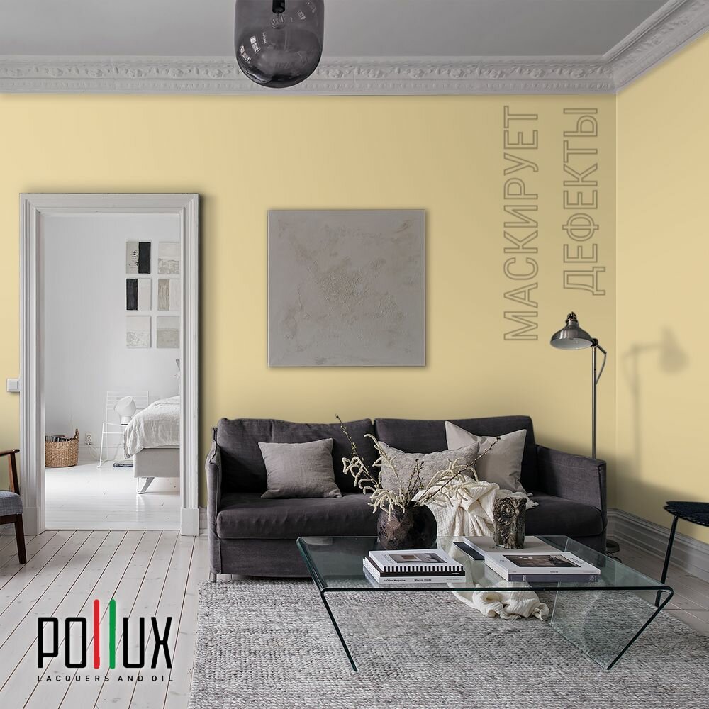 Краска моющаяся интерьерная для стен и потолков, Pollux INTERIOR без запаха, быстросохнущая, акриловая, матовое покрытие, цвет NCS S 1020-Y10R, 1л. информация: