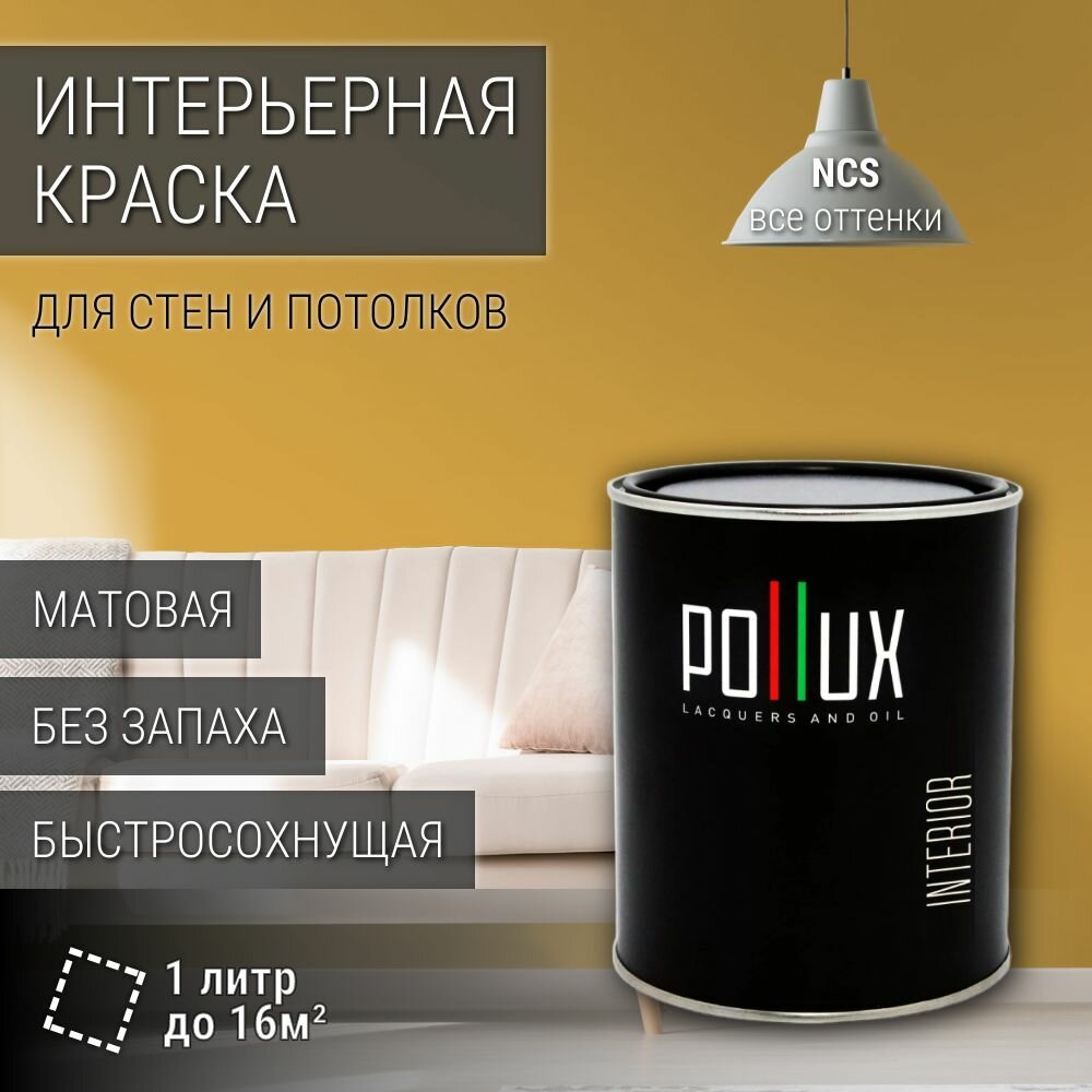 Краска моющаяся интерьерная для стен и потолков, Pollux INTERIOR без запаха, быстросохнущая, акриловая, матовое покрытие, цвет NCS S 2050-Y10R, 1л. информация:
